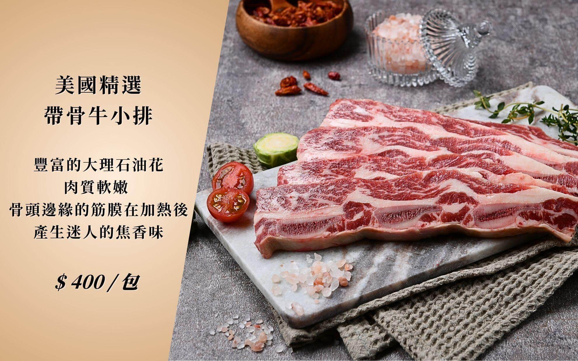美國精選帶骨牛小排-500g(3~4片入)