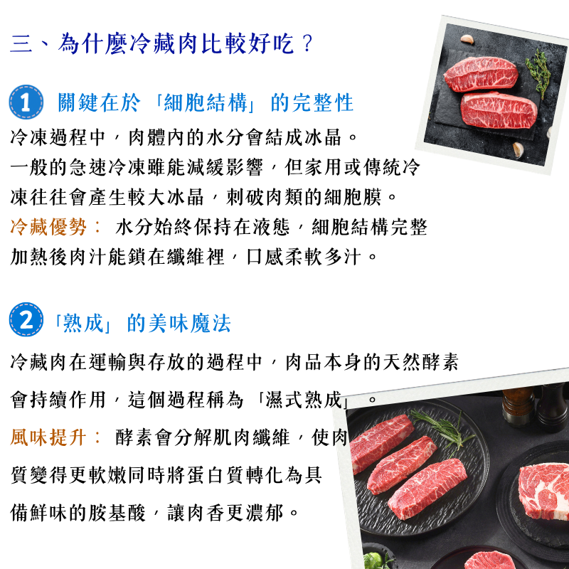 冷藏肉,冷凍肉差別,冷藏肉好吃原因,冷藏肉 vs 冷凍肉,肉汁流失,濕式熟成,梅納反應,牛排冷藏肉,肉品保存方式