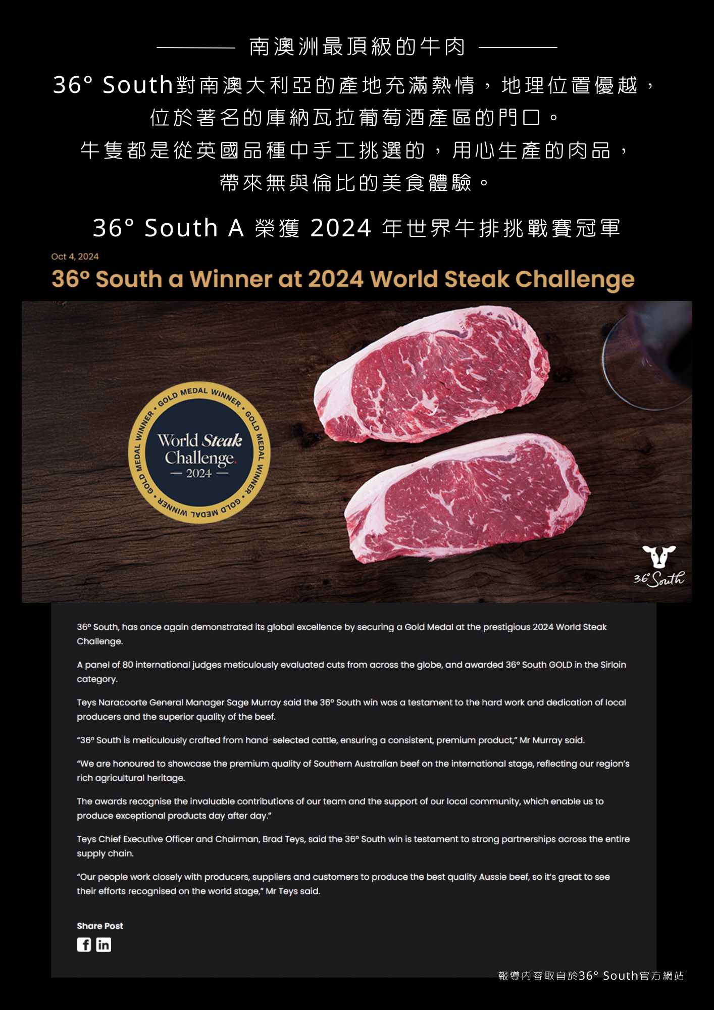 穀飼翼板,澳洲,牛排,36° South,